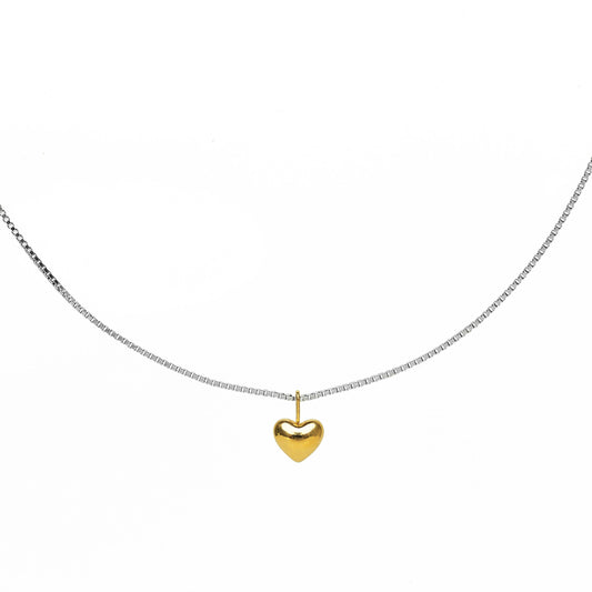 N- 108 Tiny Two-Tone Puffy Heart Necklace